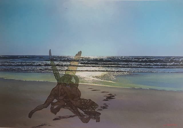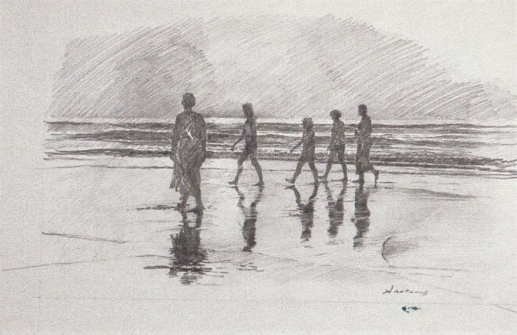 [0209] 渚の二人, パステル, 50x65cm, 2002年